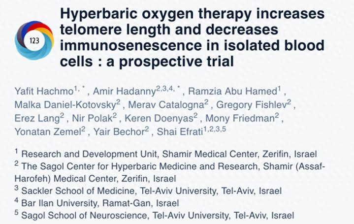 但特拉维夫大学Shai Efrati讲明团队的一项氧气搅扰实验,似乎正在挑战了这一不雅点。该实验登第35名65岁以上受试者,开展为期90天的高气压纯氧搅扰,检测甘休高慢,受试者的端粒平均长度擢升25%。