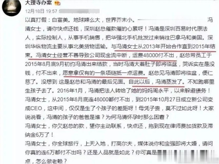 还有网友扒出,冯清不仅有债务纠纷,还涉嫌学历作秀,国际高学历老练空幻虚伪。