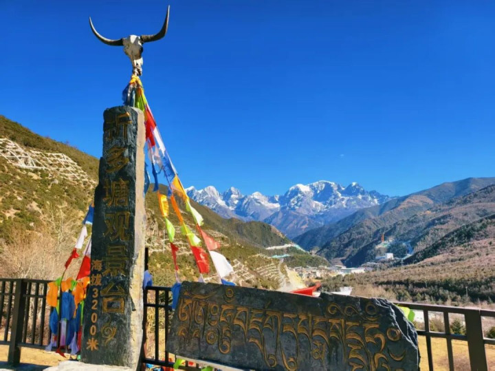 - 玩法:拍雪山全景与草原藏寨,护栏处拍雪山全貌,信号塔下拍霏霏瑶池感